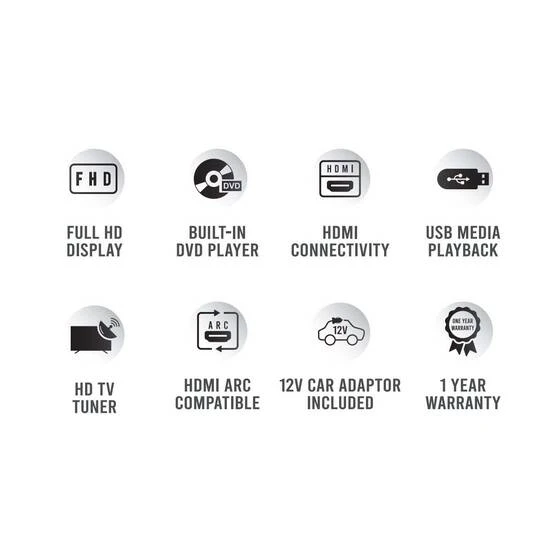 The 12V 24 ” DVD Television Combo from Altius has a 1920 x 1080 screen resolution, so you can catch small details. The built-in 12V DVD player makes it easy to watch your favourite DVD’s. It has 1 HDMI input and 1 USB inputs, so you can use it with the high-def gear you own. The package includes one convenient remote that controls both the TV and the built-in DVD player! Everything you need in one space-saving package.