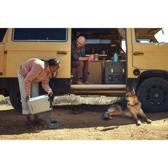 Introducing the Dometic GO 11L Water Storage Jug, made to make your life easier when it comes to storing and using water when you’re in the great outdoors. This little beauty has multiple built-in dispensing options including 2 openings for easy filling, dispensing and cleaning. It comes with a tap, spigot and quick connect fittings. Designed with removeable webbed carry handles making it easy to carry from your car to your campsite. It has built-in recesses for tying it down and fits the space behind your vehicle’s wheel well. Up your game with the Dometic GO Water Faucet (sold separately) for simple and easy dispensing of your water. Next time you’re heading into the great outdoors, don’t forget your Dometic GO Water Jug.