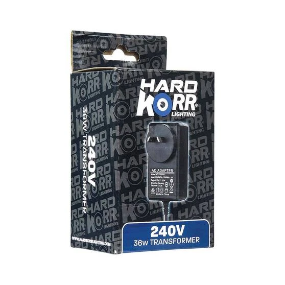 The Hardkorr 240V to 12V DC Transformer allows you to run your LED lights off a standard 240V powerpoint. It has a 3A max output capacity, allowing it to run up to five 48cm bars.