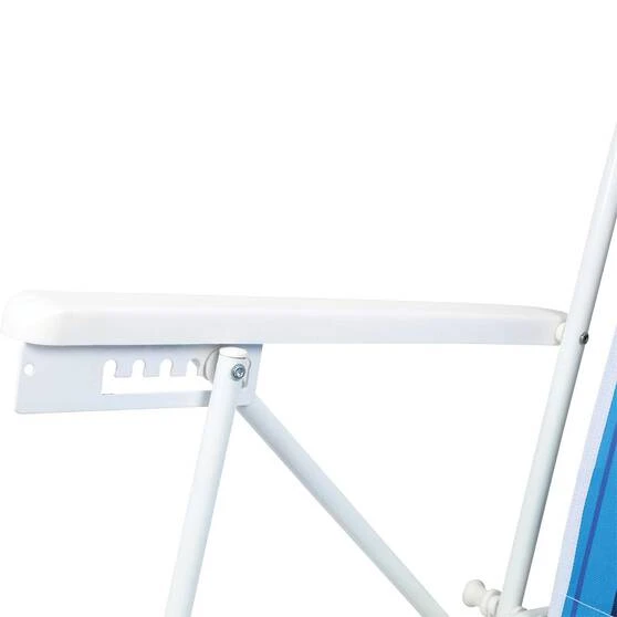 The Wanderer Summer Stripe Beach Chair is just the thing for spending a day at the beach or an outdoors event in comfort. The adjustable recline feature of this chair will ensure your comfortable all day long, plus the pillow can support either your head or your lumbar, whatever you choose. The handy mesh pocket on the back is perfect for your book or magazines. So if you are heading outdoors this summer and don’t want to sit on the ground this is a fantastic, compact and portable option.
