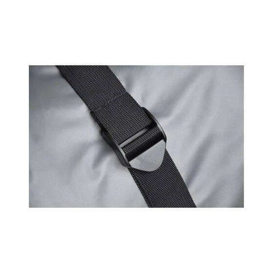 - Roll top closure with hook and loop and quick release buckle